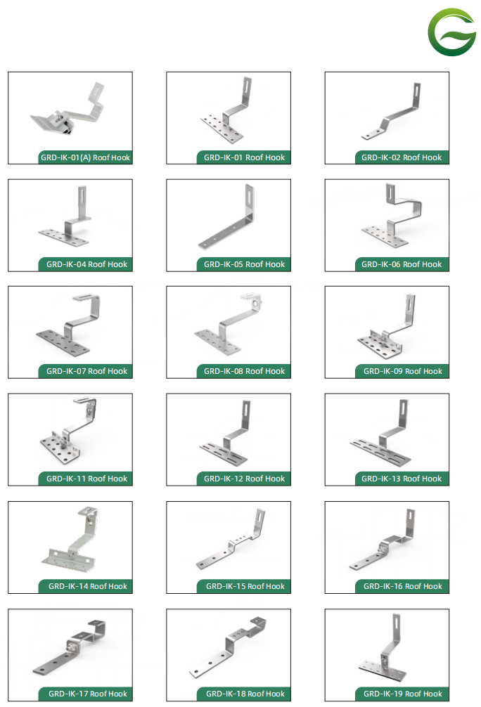 5. **Compliance with Building Codes**: Roof hooks are typically designed to meet building code requirements and safety standards for solar panel installations. Properly installed roof hooks help ensure that the solar panel system complies with local regulations and building codes.
